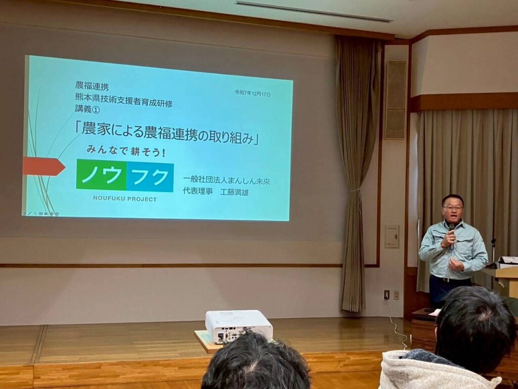 代表による、まんしん未來の農福連携の取り組み事例発表があったり