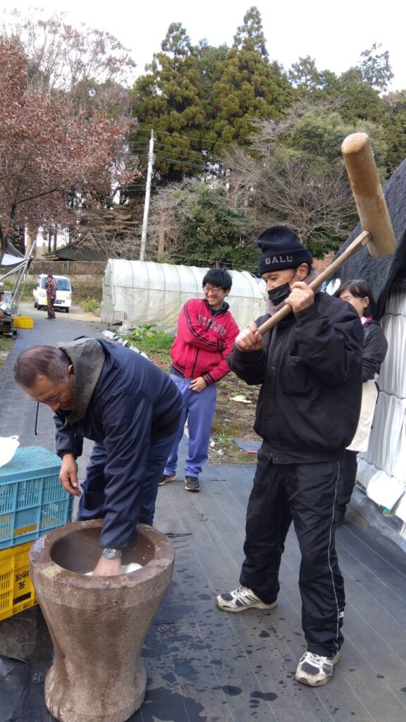 バーベキューの後は、こちらも恒例になった餅つきを行いましたよ。